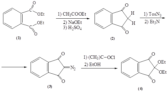 1. На основании литературных данных был спланирован синтез 2,2-диэтоксииндандиона-1,3.