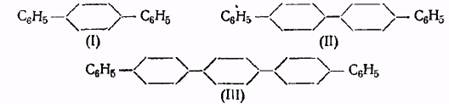 Некоторые соли диазония, для которых реакция Зандмейера протекает нормально, дают производные дифенила при действии цинковой пыли, порошка меди или порошка железа в спиртовой среде. В этих условиях из водного раствора сульфата фенилдиазония выделяется дифенил, из диазотированного β-нафтиламина — β,β'-динафтил. При этой реакции образуется заметное, количества продукта, который не гонится с водяным паром. Этот продукт состоит, главным образом, из дифенилбензола (I), дидифенила (II) и дидифенилбензола (III). Выход этих высших углеводородов повышается, если реакция проводится в уксусной кислоте, содержащей некоторое количество муравьиной кислоты.