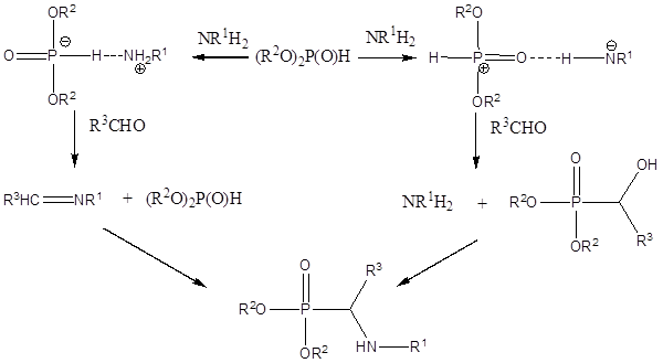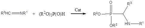 В качестве катализатора используют протон или кислоту Льюиса (активирует иминную компоненту), либо основание Льюиса (активирует фосфитную компоненту).