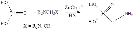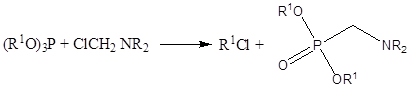 Впоследствии более широко стала применяться реакция Михаэлиса Арбузова. Исходными реагентами в этом методе служат диалкил- и триалкилфосфиты и галогеноалкиламины[4]: