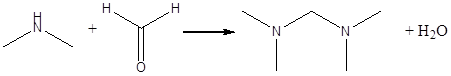 В работе [6] был предложен метод синтеза N,N,N’N’-тетраметилдиаминометана (или бис-(диметиламино)-метана) из формальдегида диметиламина. Для приготовления вещества реагенты смешивают в водном растворе при охлаждении в бане со льдом. После окончания реакции отделяют органический слой подщелачиванием гидроксидом калия. Этот слой далее отделяют, сушат над щелочью и перегоняют. Выход N,N,N’N’-тетраметилдиаминометана по данной методике составляет 77-85% от теоретического: