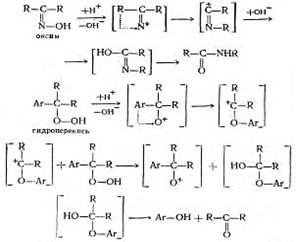 Кислотное разложение гидроперекиси изопропилбензола протекает по следующей схеме:
