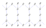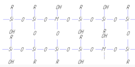 Полимеры состава [(RSiO1.5)mMOm/2] имеют незавершенную циклолинейную структуру и в зависимости от метода получения и условий синтеза способны переходить в нерастворимое состояние [8].