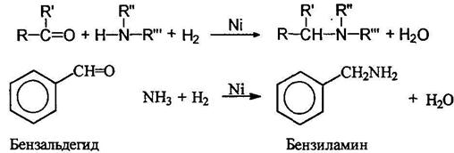 Многие альдегиды и кетоны превращаются в амины при нагревании с аммиаком и водородом в присутствии катализатора гидрирования: