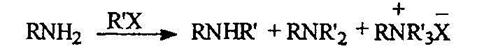 Амины бурно реагируют с алкилгалогенидами, образуя смеси аминов и солей четвертичных аммониевых оснований: