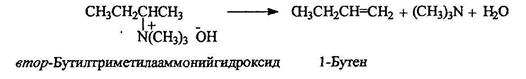 Термическое разложение четвертичных аммониевых оснований (по Гофману) приводит к образованию алкенов с крайним расположением двойной связи: