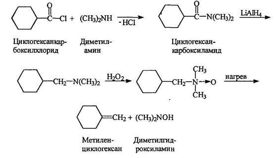 Реакция проводится в метаноле при обычной температуре. При нагревании N-оксиды расщепляются с образованием алкена и дизамещенного гидроксиламина:
