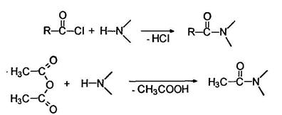 Подобно аммиаку первичные и вторичные амины реагируют с ацильными соединениями: