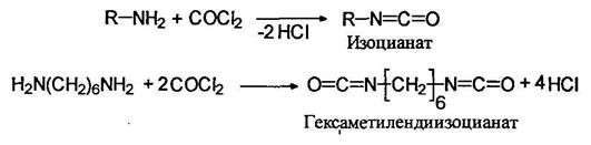 При действием на первичные амины фосгена (фосгенирование) образуются изоцианаты: