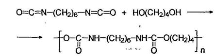 Эластомерное волокно лайкра (спандекс) получают при переработке полиуретана, синтезируемого из гексаметилендиизоцианата и 1,4-бутандиола: