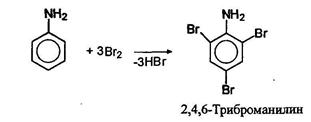 Амино и алкиламиногруппы -NH2, -NHR и -NR являются сильными ориентантами первого рода. Активация бензольного кольца аминогруппой столь велика, что при галогенировании ароматических аминов атомы галогенов стремятся занять все орто- и пара-положения: