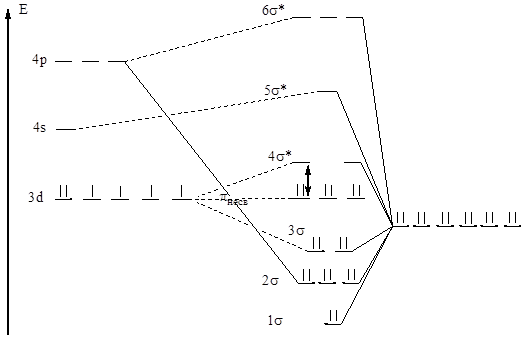 Рис. 5. Энергетическая диаграмма [Fe(CN6)]4- (метод МО).