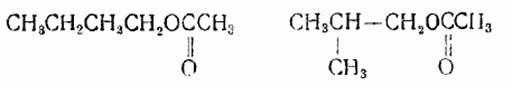 Получение изобутилового эфира уксусной кислоты. К бромистому магнийэтилу, приготовленному из 8,2 г магния, 37 г бромистого этила и 200 см3 эфира медленно при охлаждении приливают 25 г изобутилового спирта. Затем смесь слабо кипятят в течение 30 мин., охлаждают льдом, приливают эфирный раствор 35 г уксусного ангидрида и снова кипятят несколько минут. Через 12 ч реакционную массу выливают в лед, смесь слабо подкисляют и извлекают эфиром. Вытяжку промывают раствором соды, сушат, отгоняют эфир и остаток перегоняют. В технике реакцию ведут в автоклавах, а вместо бромистого этила применяют хлористый метил, хлористый этил или хлористый бензил.
