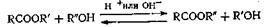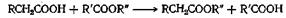 Переэтерификация представляет собой равновесную реакцию, которую можно сдвинуть в прямом направлении, применяя избыток одного из реагентов или, что предпочтительно, удаляя один из компонентов — RCOOR" или R'OH. Если температура кипения R'OH ниже, чем R"OH, можно проводить разделение, при помощи фракционирования: иногда для удаления получающихся продуктов пользуются образованием азеотропных смесей. Катализаторами такой реакции обмена служат кислоты, например серная или толуолсульфокислота, или основания, например алкоголяты алюминия. Как правило, превращение лучше протекает с первичными спиртами, причем наиболее реакционноспособен метиловый спирт, хотя в некоторых случаях с успехом можно применять вторичные спирты.