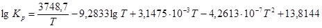 В табл. 1 приведены значения констант равновесия реакции (1) при различных давлениях и температурах: