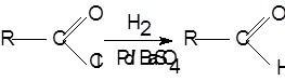 Для получения как алифатических, так и ароматических альдегидов пригодна реакция Розенмунда-Зайцева (А.М.Зайцев, 1873 г.; К.Розенмунд, 1918 г.). Чтобы избежать дальнейшего восстановления формильной группы в продукте реакции, активность катализатора снижают добавкой контактных ядов (фенилизотиоцианат, тиомочевина, 2-меркаптотиазол). Наиболее эффективным каталитическим ядом оказалась тетраметилтиомочевина (ТМТМ).