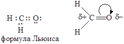Электронное строение альдегидов показано ниже также на примере формальдегида.