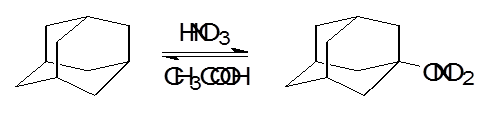 Несколько позднее авторы предложили для синтеза нитрата 2 использовать смесь азотной и уксусной кислот. Адамантан со смесью азотной и уксусной кислот взаимодействует с меньшей скоростью, чем с азотной кислотой, и максимальный выход нитрата 2 80% (мольное соотношение азотной и уксусной кислот 3:1, количество смеси 24 моль) достигается за 3 ч. Единственным побочным продуктом реакции является адамантанол-1.
