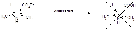 Омыление 2,5-диметил-3-иод-4-карбоэтоксипиррола.