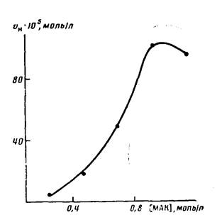Рис. 2. Зависимость начальной скорости реакции прививочной сополимеризации от концентрации МАК в растворе. рН 2,8; 333 К; K2S208: Na2S203=l : 2; [Cu+]=0,002%