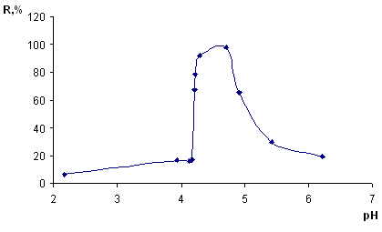 Из данного рисунка видно, что оптимальный диапазон извлечения меди (93-95%) pH 4,3 – 4,9.