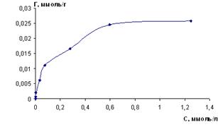 Из горизонтального участка изотермы определена сорбционная емкость сорбента, которая составляет 0,025 ммоль/г.