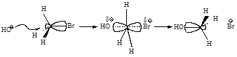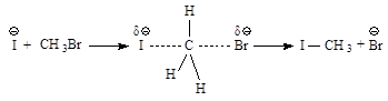 Скорость реакции. Гидролиз бромистого метила является реакцией второго порядка, скорость его зависит от концентрации двух веществ и определяется по формуле V = K [R-Hal] [Nu]. Термин «бимолекулярное замещение» означает, что в скорость определяющей стадии участвуют две частицы. Поскольку разрыв связи углерод-уходящая группа и образование связи нуклеофил-углерод происходят одновременно, бимолекулярное нуклеофильное замещение называют согласованным процессом.