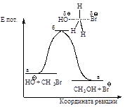Энергетическая диаграмма реакции (рис. 2.2) изображает изменение потенциальной энергии в ходе реакции нуклеофильного замещения.