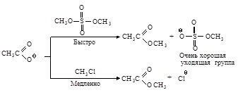 Уходящие группы. «Хорошими» уходящими группами являются те группы, которые, оторвавшись от атома углерода, образуют устойчивые анионы. Сильные основания являются обычно «плохими» уходящими группами, слабые основания - «хорошими» уходящими группами.