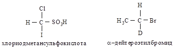 Если два атома являются изотопами одного элемента, то преимущество имеет атом с большим массовым числом. Например, в хлориодметансульфо- кислоте атомы, согласно их старшинству, располагаются в следующей последовательности: I > С1 > S > Н; в a-дейте-роэтилбромиде — Вг > С > О > Н.