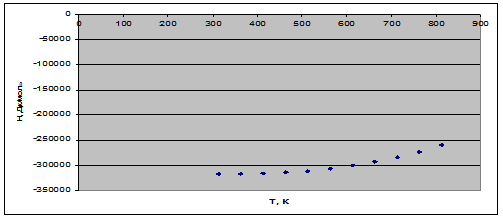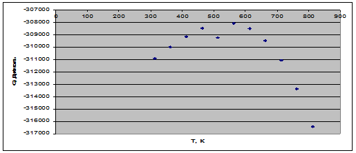 Рис. 3. Зависимость энергии Гиббса от температуры.