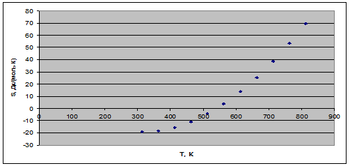 Рис. 2. Зависимость энтропии реакции от температуры.