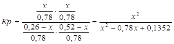 Полученные значения мольных долей подставляем в уравнение константы равновесия: