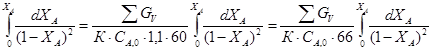 Задание: С учетом функции распределения частиц по времени пребывания рассчитать среднюю конечную концентрацию СА и среднюю степень превращения ХА.