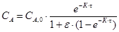 Характеристическое уравнение, определяющее концентрацию реагента в элементарном объеме в зависимости от порядка реакции имеет вид для реакции первого порядка: