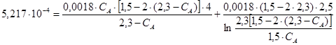 где СВ,1=СВ,0 – 2(СА,0 – СА,1)= 0,034