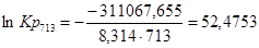 Рассчитаем логарифм константы равновесия в заданном температурном интервале используя уравнение изотермы Вант-Гоффа: