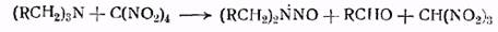 Другой тип расщепления наблюдается при действии тетранитрометана на третичные амины, причем образуются соответственные нитрозамины.