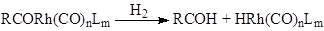 Первый важный промышленный синтез альдегидов и спиртов по реакции СО и Н2 с олефинами был открыт в 1939 г О. Рёленом. Процесс получил название “оксосинтез” (oxo-process), а реакцию синтеза альдегидов называют реакцией гидроформилирования, например: