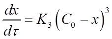 Если для реакции третьего порядка использовать величину х, то уравнение для скорости реакции приобретет вид: