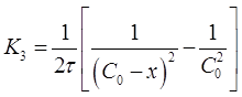 Константу скорости К3 определяют экспериментально. При этом используют уравнение (21) в виде: