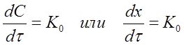 Размерность константы скорости реакции нулевого порядка К0, [время-1 конц.].