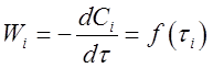 Из опытов, как правило, получают зависимость концентрацииданного компонента от времени (кинетическую кривую) Ci= f(τi) .