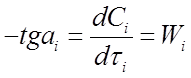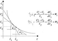 Ci- τi (рисунок 5). Скорость реакции в заданные моментывремени τi находят проведением касательных к экспериментальной кривойпо величине тангенса угла наклона этих касательных (графическимдифференцированием):