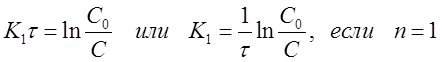 Проинтегрируем уравнение (29) в пределах от 0 до τи от С0 до С при п = 1, 2, 3, при этом получим: