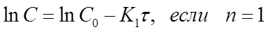 при п=1 в координатах ln C-τ