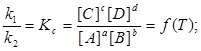 Применив закон действующих масс к прямой и обратной реакциям, получим: