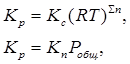 k1 и k2 для данной реакции при одной и той же температуре являются величинами постоянными, а значит, их отношение постоянно: Kc – величина постоянная и называется константой равновесия. Для реакций между газообразными веществами вместо концентраций можно использовать парциальные давления газов в смеси. При этом константу равновесия обозначают через Kp. Если концентрации выражены в мольных долях, то константа равновесия обозначается через KN. Между Kc, Kp и KN существуют следующие зависимости: