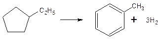 При дегидроизомеризации алкилциклопентанов С6-С8 на алюмоплатиновом катализаторе, реакция протекает достаточно селективно, а состав и строение получаемых ароматических углеводородов зависят от состава и строения исходных алкилциклопентанов.