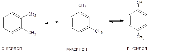 Изомеризация ксилолов включает следующие стадии: гидрирование в соответствующий циклоолефин, изомеризация циклоолефина по карб-катионному механизму и дегидрирование образовавшегося углеводорода в другой изомер ксилола: